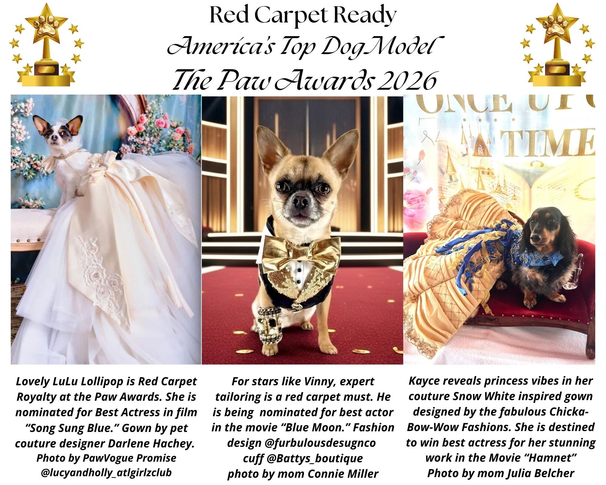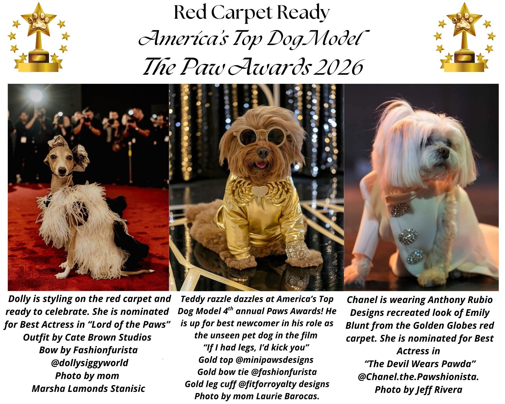 Welcome to America’s Top Dog Model Paw Awards! As the brightest stars gathered for the 4th annual Paw Awards, the red carpet unfolded as a dazzling showcase of couture craftsmanship, exquisite jewels, and unforgettable style moments. From dramatic silhouettes to impeccably tailored eveningwear, discover the standout looks that defined the night.